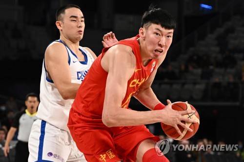 epa10045163 Qi Zhou of China (R) and Szu-Yao Sun of Chinese Taipei in action during the FIBA Basketball World Cup qualification match between China and Chinese Taipei at John Cain Arena in Melbourne, Australia, 01 July 2022. EPA/JOEL CARRETT