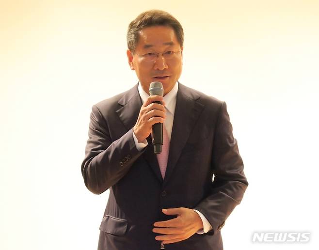 [인천=뉴시스] 김동영 기자 = 유정복 인천시장이 1일 오후 인천시 남동구 구월동 인천시교육청 대회의실에서 열린 도성훈 인천시교육감 취임식에서 축사를 하고 있다. 2022.07.01. dy0121@newsis.com