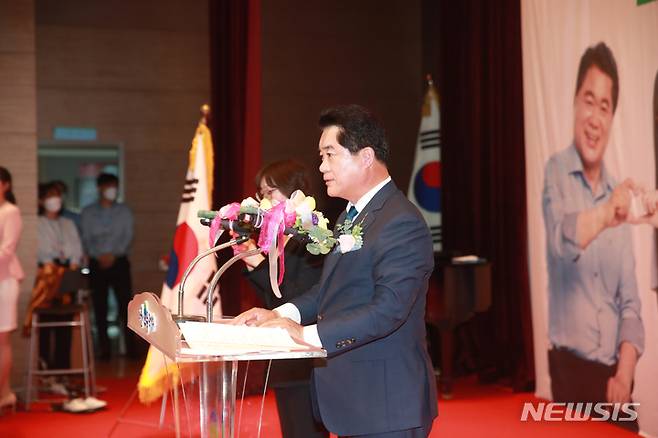 [서울=뉴시스] 박준희 관악구청장이 서울 관악구청 8층 대강당에서 열린 민선 제8대 관악구청장 취임식에서 취임사를 하고 있다. 2022.07.01. (사진 = 관악구 제공) photo@newsis.com