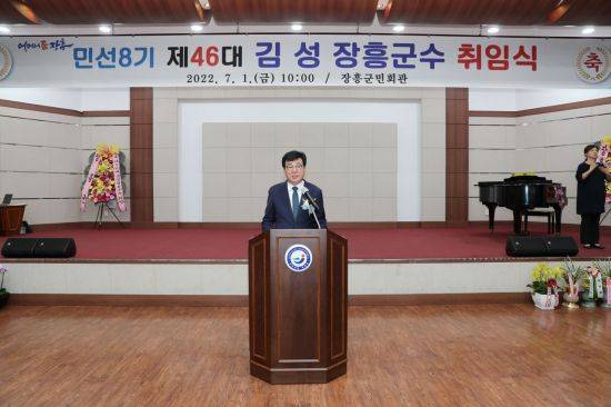 김성 군수는 취임사에서 장흥군민의 지지와 성원에 감사의 뜻을 전하며 "장흥을 전국에서 가장 살고 싶고 아름다운 고장으로 만들겠다"고 밝혔다.