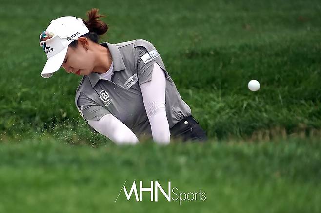 윤화영(22.케이앤엘정보시스템)이 1번홀 페어웨이 벙커에서 탈출하고 있다.