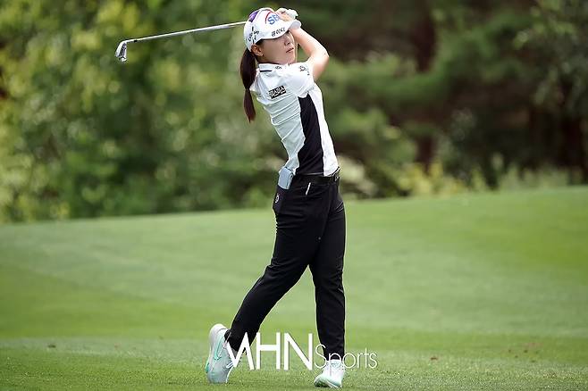 이소미(23.SBI금융그룹)가 3번홀 세컨드샷을 날리고 있다.