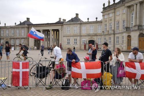 epa10045332 Spectators wait for the first stage of the Tour de France 2022 cycling race, an individual time trial over 13.2km at Amalienborg Royal Castle Square in Copenhagen, Denmark, 01 July 2022. EPA/Mads Claus Rasmussen DENMARK OUT