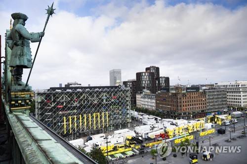 epa10045405 General view of the finish area for the first stage of the Tour de France 2022 cycling race, an individual time trial over 13.2km, seen from the City Hall balcony at the City Hall Square in Copenhagen, Denmark, 01 July 2022. EPA/Martin Sylvest DENMARK OUT