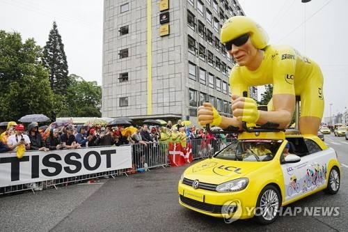 epa10045681 Spectators watch the caravan at the starting point for the first stage of the Tour de France 2022 cycling race, an individual time trial over 13.2km in Copenhagen, Denmark, 01 July 2022. EPA/Bo Amstrup DENMARK OUT