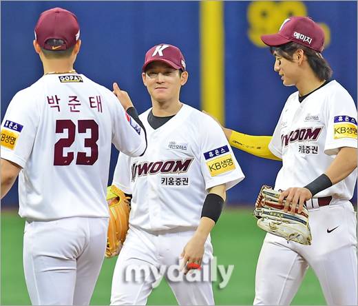 [MD포토] 이정후 박준태 '김준완 니가 MVP야'