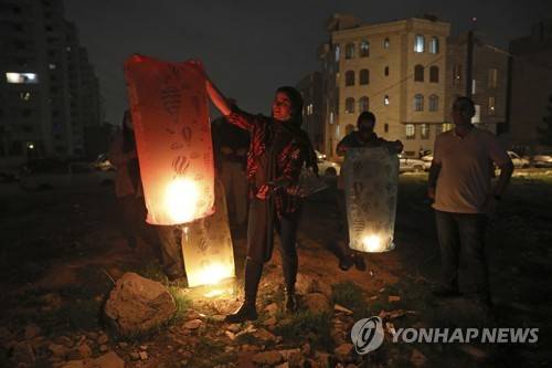 FILE - People light wish lanterns while celebrating Chaharshanbe Souri, or Wednesday Feast, an ancient Festival of Fire, on the eve of the last Wednesday of the solar Persian year, in Tehran, Iran, Tuesday, March 15, 2022. Among the world’s present-day religions, Zoroastrianism is one of the most ancient and historically influential. It was founded more than 3,000 years ago and became the major religion in Persia. (AP Photo/Vahid Salemi, File) FILE PHOTO
