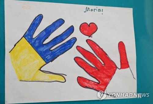 epa10045707 Drawings displayed during the opening of the exhibition titled 'War drawn with a crayon' at the Pomeranian Dukes' Castle in Szczecin, West Poland, 01 July 2022. The exhibition includes several dozen drawings made by children from Ukraine suffering from the trauma of the war in their country. The exhibition was prepared by the West Pomeranian Society of Friends of Children. EPA/Marcin Bielecki POLAND OUT