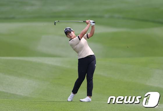 (서울=뉴스1) = 1일 강원도 평창에 위치한 버치힐CC에서 열린 '맥콜-모나파크 with SBS Golf' 1라운드 7번홀에서 홍지원이 아이언샷을 하고 있다 (KLPGA 제공)2022.7.1/뉴스1