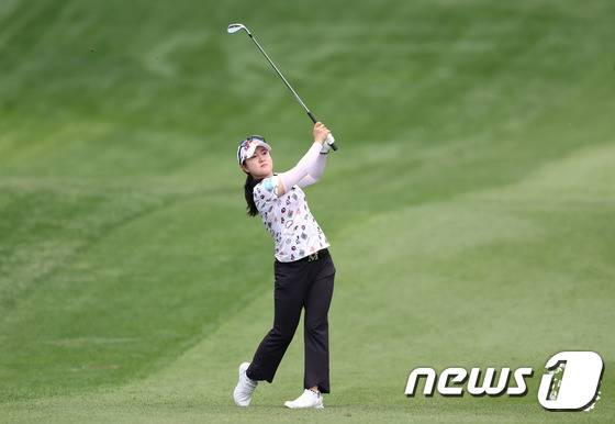 (서울=뉴스1) = 1일 강원도 평창에 위치한 버치힐CC에서 열린 '맥콜-모나파크 with SBS Golf' 1라운드 7번홀에서 이승연이 아이언샷을 하고 있다. (KLPGA 제공)2022.7.1/뉴스1