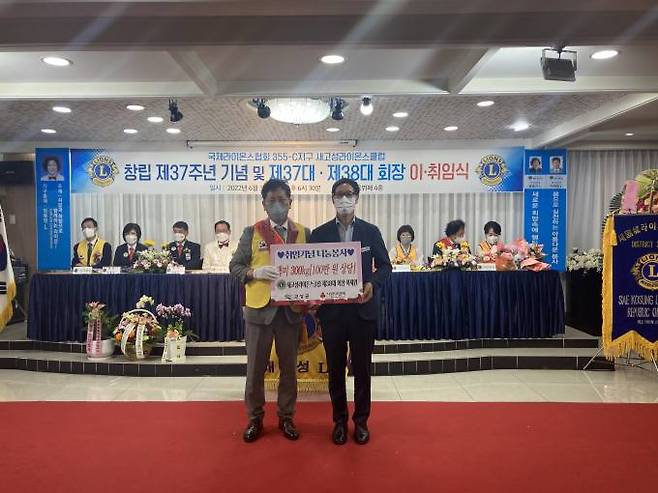 새고성라이온스클럽 제38대 회장 이재원은 6월30일 새고성라이온스클럽 37주년 기념 및 회장 이·취임식을 맞아 관내 어려운 이웃들을 위해 백미 300kg을 전달했다.