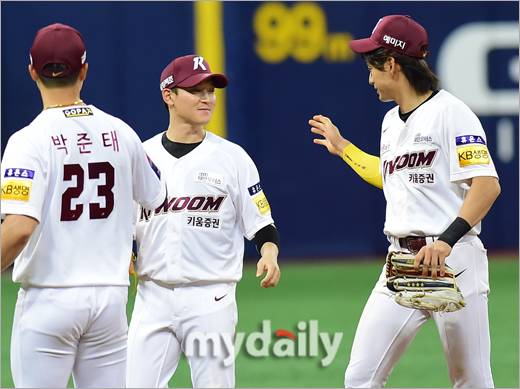 키움 김준완은 7회 2사 만루에 주자 싹쓸이 3타점 3루타를 치며 자신의 두 번째 결승타를 기록했다.- ⓒ마이데일리(www.mydaily.co.kr). 무단전재&재배포 금지 -