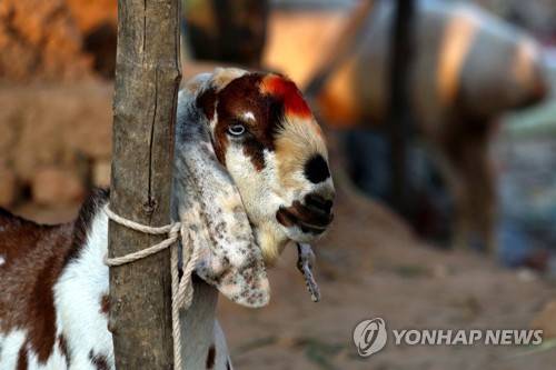 epaselect epa10045520 Goats are on sale at a market ahead of the Muslim festival of Eid al-Adha in Peshawar, Pakistan, 01 July 2022. Eid al-Adha is one of the holiest Muslims holidays of the year. It marks the yearly Muslim pilgrimage, known as Hajj, to visit Mecca. During Eid al-Adha Muslims will slaughter an animal and split the meat into three parts; one for family, one for friends and relatives, and one for the poor and needy. EPA/BILAWAL ARBAB