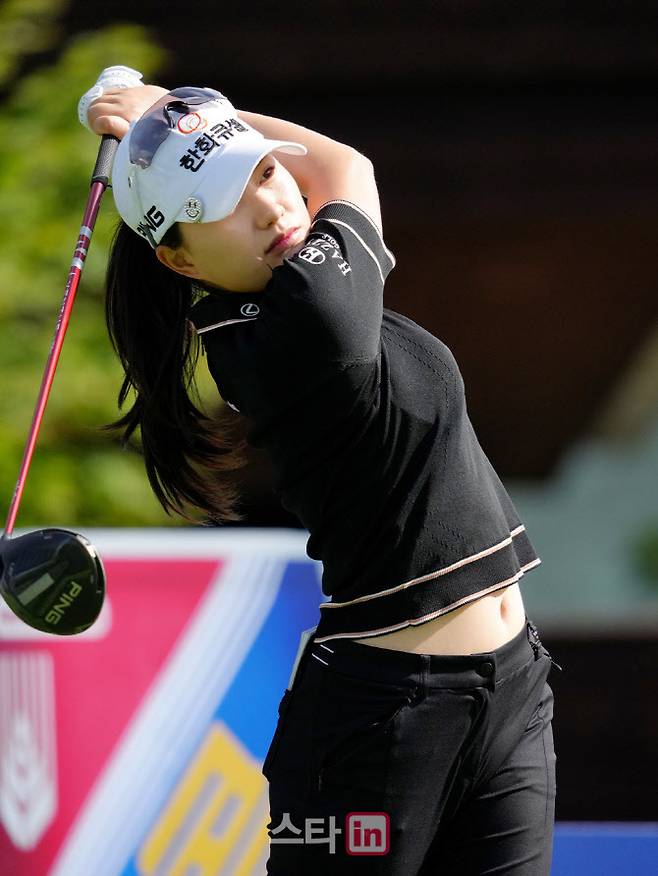 [이데일리 골프in=용평 조원범 기자]1일 강원 용평에 위치한 버치힐(파72ㅣ6434야드)에서 '맥콜 모나파크 오픈 with SBS Golf'(총상금 8억 원, 우승상금 1억4천4백만 원)1라운드가 열렸다.허다빈의 10번홀 경기 장면.