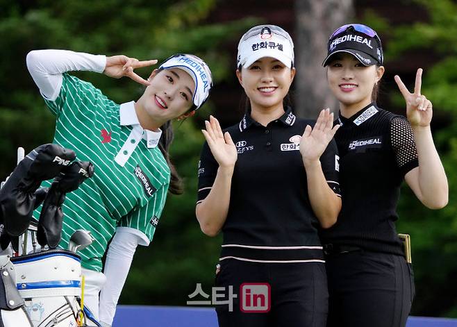 [이데일리 골프in=용평 조원범 기자]1일 강원 용평에 위치한 버치힐(파72ㅣ6434야드)에서 '맥콜 모나파크 오픈 with SBS Golf'(총상금 8억 원, 우승상금 1억4천4백만 원)1라운드가 열렸다.김재희,허다빈,안지현의 10번홀 경기 장면.