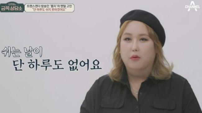 풍자는 “우선은 저를 ‘미친 애’라고 표현하고 싶다”며 의미심장하게 운을 뗐다. 풍자는 “쉬는 날이 하나도 없다, 일만 했다”며 하루에 방송만 3~4개 할 정도라고. 그는 “잠 자는 시간이 아까워, 오늘도 두 시간 자고 왔다”며 “라이브 방송 8시간하고, 개인채널 브이로그 촬영 중, 또 오늘 이렇게 ‘금쪽 상담소’ 촬영 끝나고 미팅이 잡혀있다”며 24시간을 부족하게 살아가고 있다고 전했다.