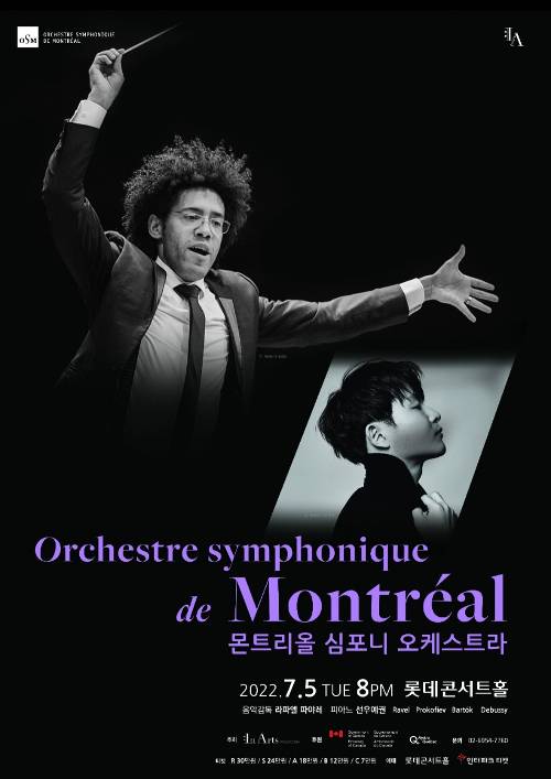 캐나다의 명문 교향악단인 몬트리올 심포니 오케스트라가 14년 만에 한국을 찾아 5일 서울 롯데콘서트홀(포스터), 6일 서울 예술의전당, 7일 대구콘서트하우스, 8일 통영국제음악당에서 공연한다.