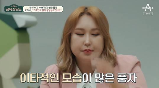 이에 오은영은 풍자가 워커홀릭이 된 이유에 대해 “어릴 때 경제적으로 너무 가난했기 때문에 가족들에게 가난을 물려주고 싶지 않아서 굉장히 일에 매달린 것은 아닐까 생각이 든다”고 밝혔다.