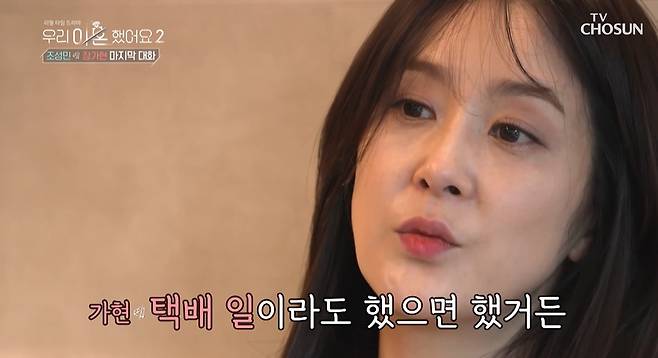 조성민은 한숨을 내쉬며 "나는 열심히 살지 않았다고 생각하는 거냐"라고 물었고, 장가현은 "나는 당신이 집에서 쉬고 있을 때 사업을 하거나 한방을 노리는 일말고, 돈이 적어도 꾸준히 수입을 얻을 수 있는 택배 일이라도 하기를 바랐다"고 고백했다.
