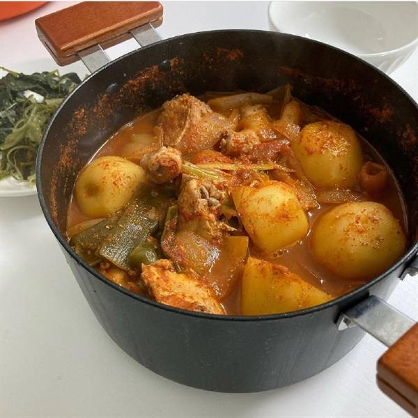 | ▲ 닭껍질을 안 떼고 무심코 요리한 닭볶음탕. 미안하다. 오늘은 그냥 먹자. |