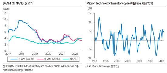 황민성 팀장은 “하반기 전망이 이렇게 안 좋아질 것을 올초 알기 어려웠던 것과 같이 향후 6개월 이후도 알기 어려울 것이지만, 마이크론이 기다리지 않고 바로 투자 축소를 발표한 것은 서프라이즈”라고 해석하며 “그 만큼 과거와 달리 공급업체들이 공장 가동률을 조절하고 재고는 무리하게 팔기보다 내년에 상황이 호전되면 판매하겠다는 의지를 보인 것”이라고 호평했다. 이에 “수요 감소가 기대보다 빠르고, 공급 조절 또한 기대보다 빠르면 회복도 과거에 비해 빨리 올 수 있다는 기대감이 여전하다”고 예상했다.