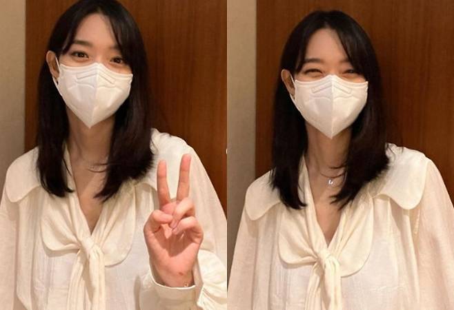 사진에는 화이트 컬러 의상을 입은 신민아가 포즈를 취하고 있는 모습이 담겨있다. 마스크를 쓰고 카메라를 응시하고 있는 신민아는 보기만 해도 기분이 좋아지는 눈웃음으로 러블리한 매력을 드러내고 있다. 마스크로도 가려지지 않는 미모가 감탄을 자아낸다.