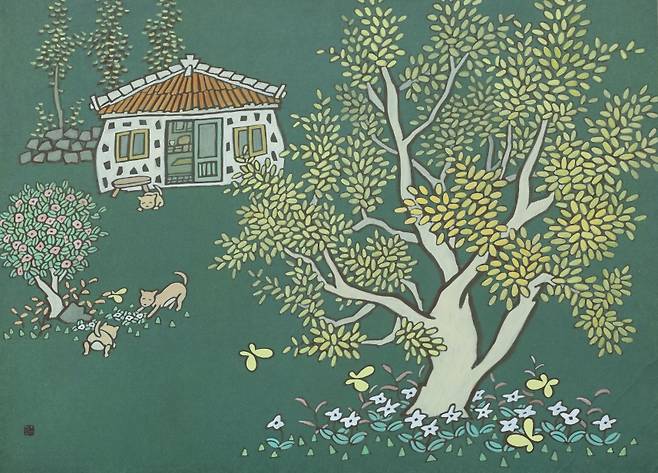 작가노트를 통해 고은 작가는 "제주의 아름다운 숲과 바다 위의 섬들, 사라져가는 시골 슬레이트집과 돌담, 소소한 풍경들(을 통해) 바쁘게 살아가는 우리들 마음에 따뜻한 마음과 행복을 전하고 싶다"고 말했습니다.