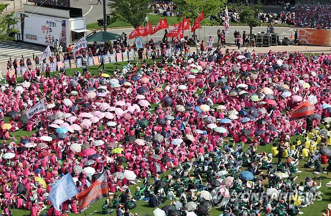 (서울=연합뉴스) 임헌정 기자 = 2일 서울 중구 서울시청 앞 광장과 세종대로 일대에서 2022 민주노총 전국노동자대회가 열리고 있다. 2022.7.2
