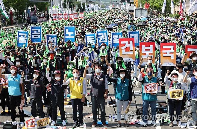(서울=연합뉴스) 임헌정 기자 = 2일 서울 중구 서울시청 앞 광장과 세종대로 일대에서 2022 민주노총 전국노동자대회가 열리고 있다. 2022.7.2