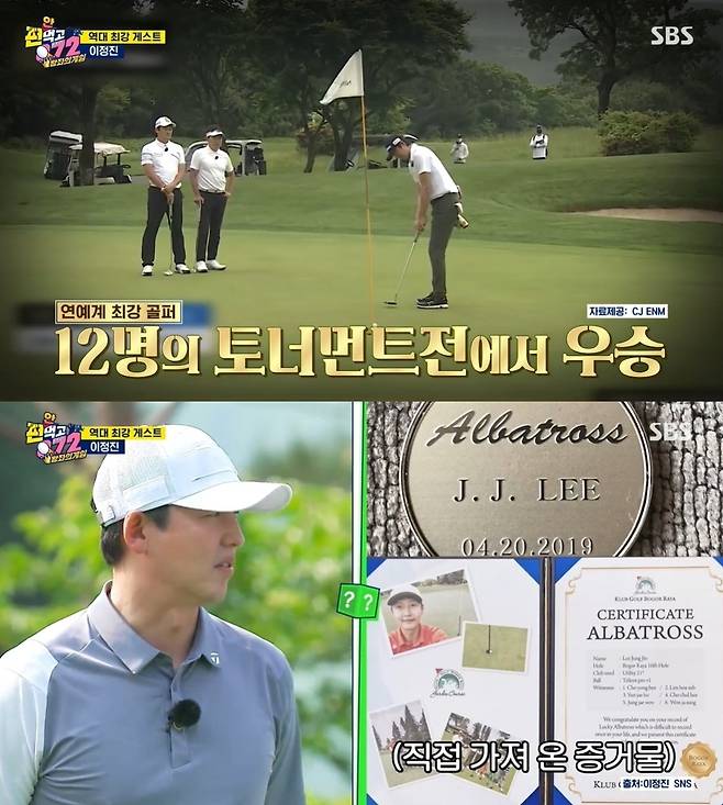 이날 배우 이정진이 등장하자 이승기는 "반칙이다. 정진이 형은 스타골프리그에서 우승했다"라며 불만을 토로했다.