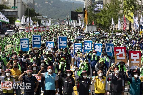 거리로 나온 노동자들[경향포토]
