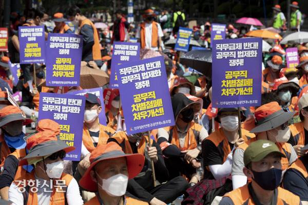 거리로 나온 노동자들[경향포토]