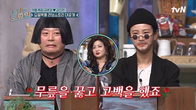 박나래는 "편하게 술 먹는 자리였는데, 김준호가 머리부터 발끝까지 정장 풀착장으로 왔다"면서 "눈물 흘리며 무릎 꿇고 고백했다. 그렇게 진심으로 할 줄 몰랐다"고 전했다.