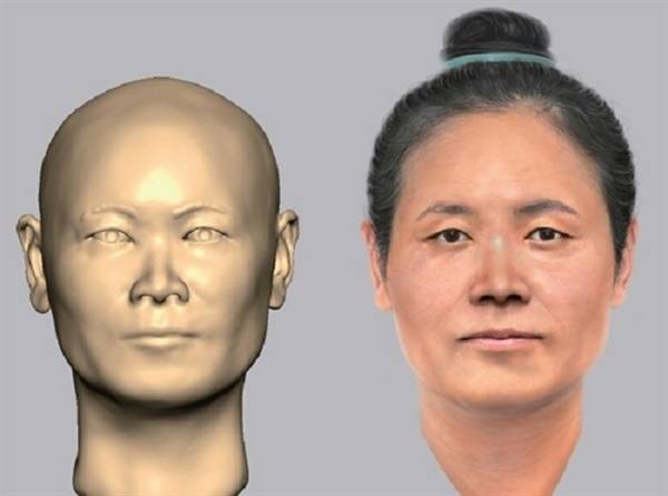 | ▲ 무덤 주인공의 두개골을 분석한 결과 이 금동 신발의 주인공은 키 146cm 정도의 체격을 가진 40대 여성으로 밝혀졌다. 이를 근거로 재현한 여성 수장의 모습 |