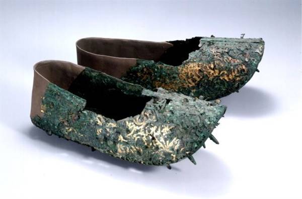 | ▲ 1971년 충남 공주에서 발견된 무령왕비의 금동신발. 발바닥에 스파이크가 박혀있다 |