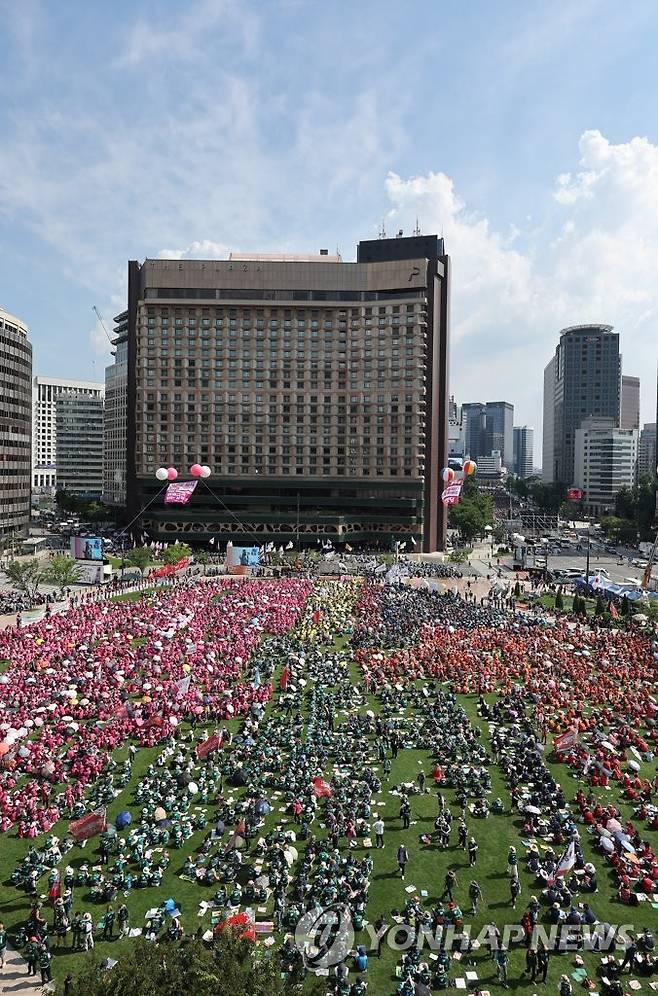 (서울=연합뉴스) 임헌정 기자 = 2일 서울 중구 서울시청 앞 광장과 세종대로 일대에서 민주노총 전국노동자대회가 열리고 있다. 2022.7.2