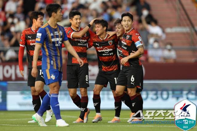 반면 울산은 이날 포항스틸야드에서 열린 '동해안 더비'에서 0대2로 완패했다. 포항은 돌아온 '라인브레이커' 김승대의 멀티골 활약을 앞세워 승리했다. 김승대는 전반 15분 고영준의 패스를 논스톱 슈팅으로 연결해 선제골을 뽑았다. 이어 후반 8분에 임상협이 올린 공을 다이빙 헤딩으로 밀어넣으며 멀티골을 완성했다. 김승대가 멀티골을 뽑은 것은 2015년 3월 서울전 이후 7년여 만이다. 포항은 이날 승리로 제주를 밀어내고 3위로 치고 올라섰다.
