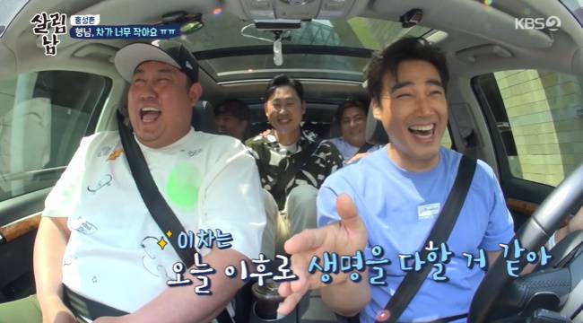 홍성흔→김태균, 총 555kg 한 차 탑승 "안전벨트야 목 벨트야" 폭소(살림남2)