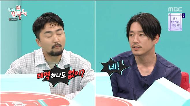 "지금 멋있는데"라며 과거를 폭로하는 박준형을 보며 장혁은 "이형 누가 데리고 왔냐"고 불편한 심기를 드러내 폭소케 했다.
