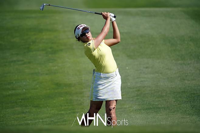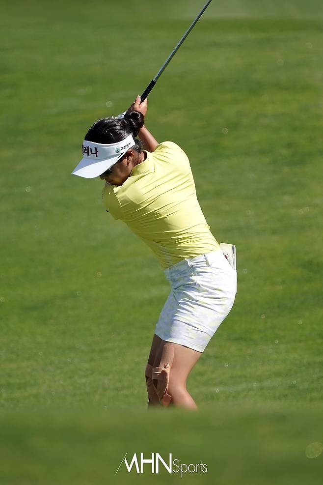 김민주(19.유한양행)가 10번홀 서드샷을 날리고 있다.