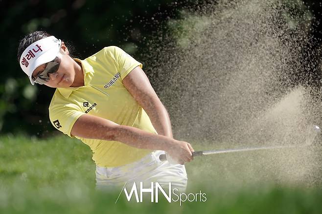 김민주(19.유한양행)가 10번홀 페어웨이 벙커에서 탈출하고 있다.