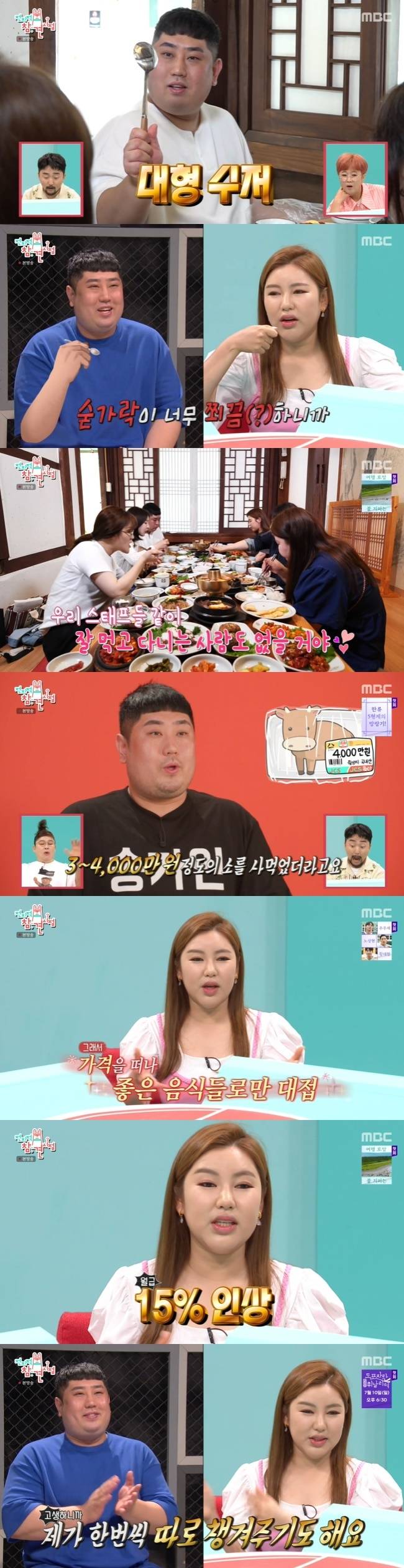 매니저는 "누나가 스태프들을 많이 챙기다 보니까 주로 저희가 예전에는 소고기를 많이 먹었다. 3~4개월 만에 3~4천만 원 정도의 소를 사 먹었더라"고 말해 주위를 놀라게 했다.