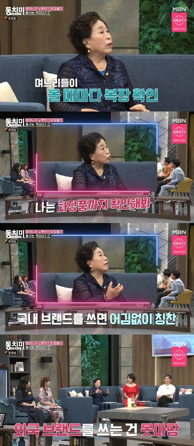 뒤이어 전원주는 “애들 오면 핸드백, 옷 다 본다. 큰 며느리는 다 명품이라 보기 싫다. 작은 며느리는 국산이다. 난 화장품까지 본다. 국산 쓰면 칭찬, 외제 쓰면 미워한다. 큰 며느리는 전부 명품을 좋아한다. 그게 비교가 된다”고 두 며느리의 다른 점을 들었다.