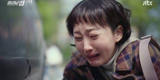 이어 펑펑 눈물을 쏟으며 바닥에 털썩 주저앉기까지 해 안타까움을 자아냈다. (사진=JTBC '클리닝 업' 캡처)