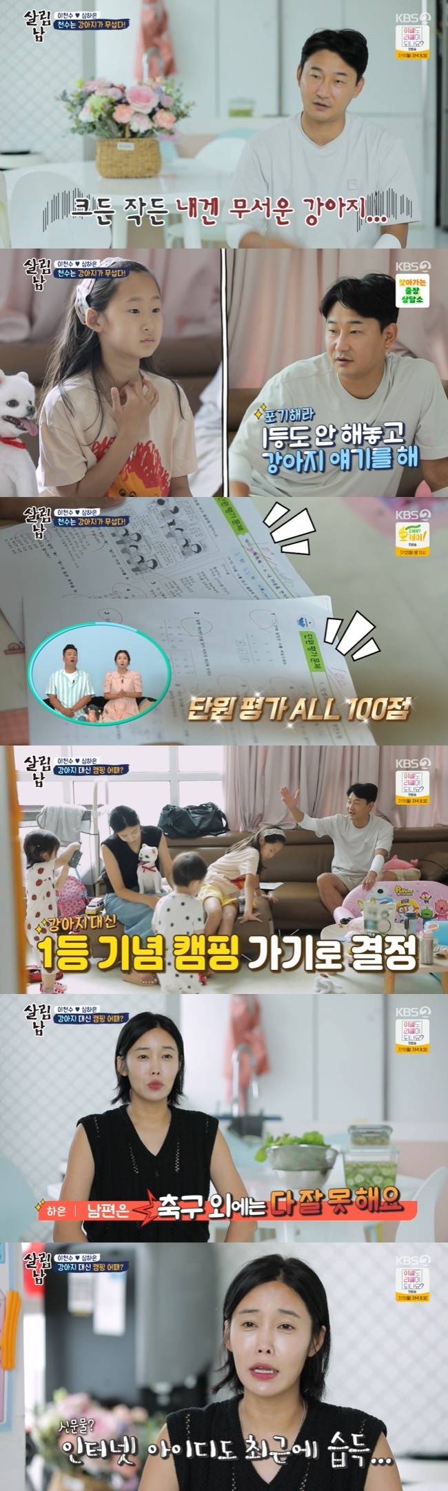 이주은이 강아지를 키우고 싶다고 부탁하자, 이천수는 “아빠가 너 1등 하면 고민 해본다고 했잖아. 1등도 안 해놓고 강아지 얘기를 하냐”라고 지적했다. 이에 이주은은 단원 평가에서 올 100점을 받은 시험지를 꺼냈고, 당황한 이천수는 “물고기 키운 거 기억나냐. 그거 다 내가 키웠다. 너 공부하면 강아지를 내가 다 키운다”라고 반대했다.