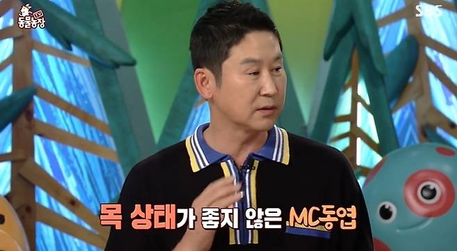 7월 3일 방송된 SBS 'TV 동물농장' 오프닝에서 신동엽은 목소리를 크게 내지 못하는 목 컨디션을 보여줬다.