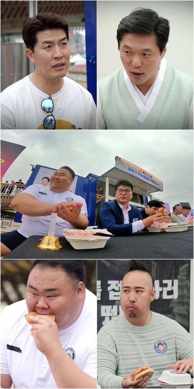 유희관이 전현직 천하장사들과 먹방 맞대결을 펼친다.