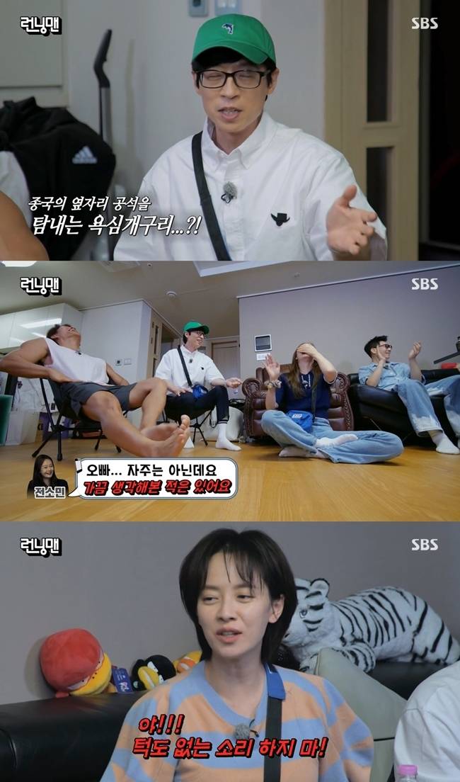 송지효가 김종국 옆자리를 탐내는 전소민을 경계해 웃음을 자아냈다.