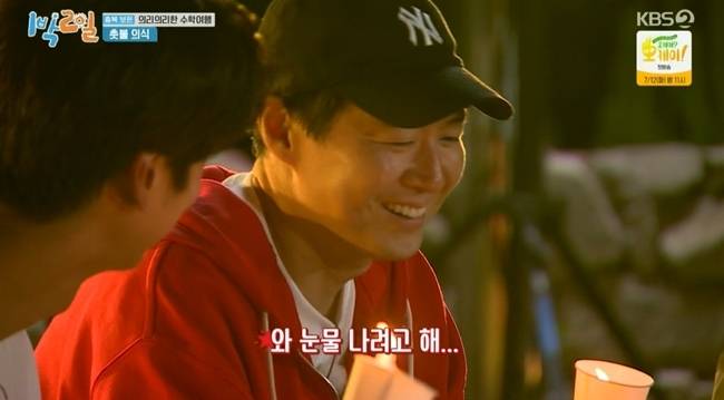 이날 잠 들기 전 촛불 의식이 진행됐다. 촛불과 종이컵을 보고 놀란 딘딘은 "진짜 눈물 날 것 같아"라고 말했고, 연정훈은 "컵에 초 꽂는 거 30년만에 해보는 거 같다"며 놀라워했다.