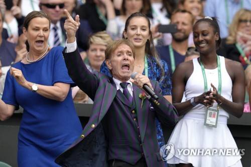 Cliff Richard sings during a 100 years of Centre Court celebration on day seven of the Wimbledon tennis championships in London, Sunday, July 3, 2022. (AP Photo/Kirsty Wigglesworth)